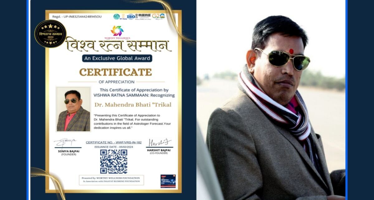 Dr. Mahendra Bhati, also known as “Trikal,” has been honored with the World Jewel Award.